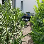 Along with self-catering amenities like an equipped kitchen, the apartment also offers an outdoor dining area.